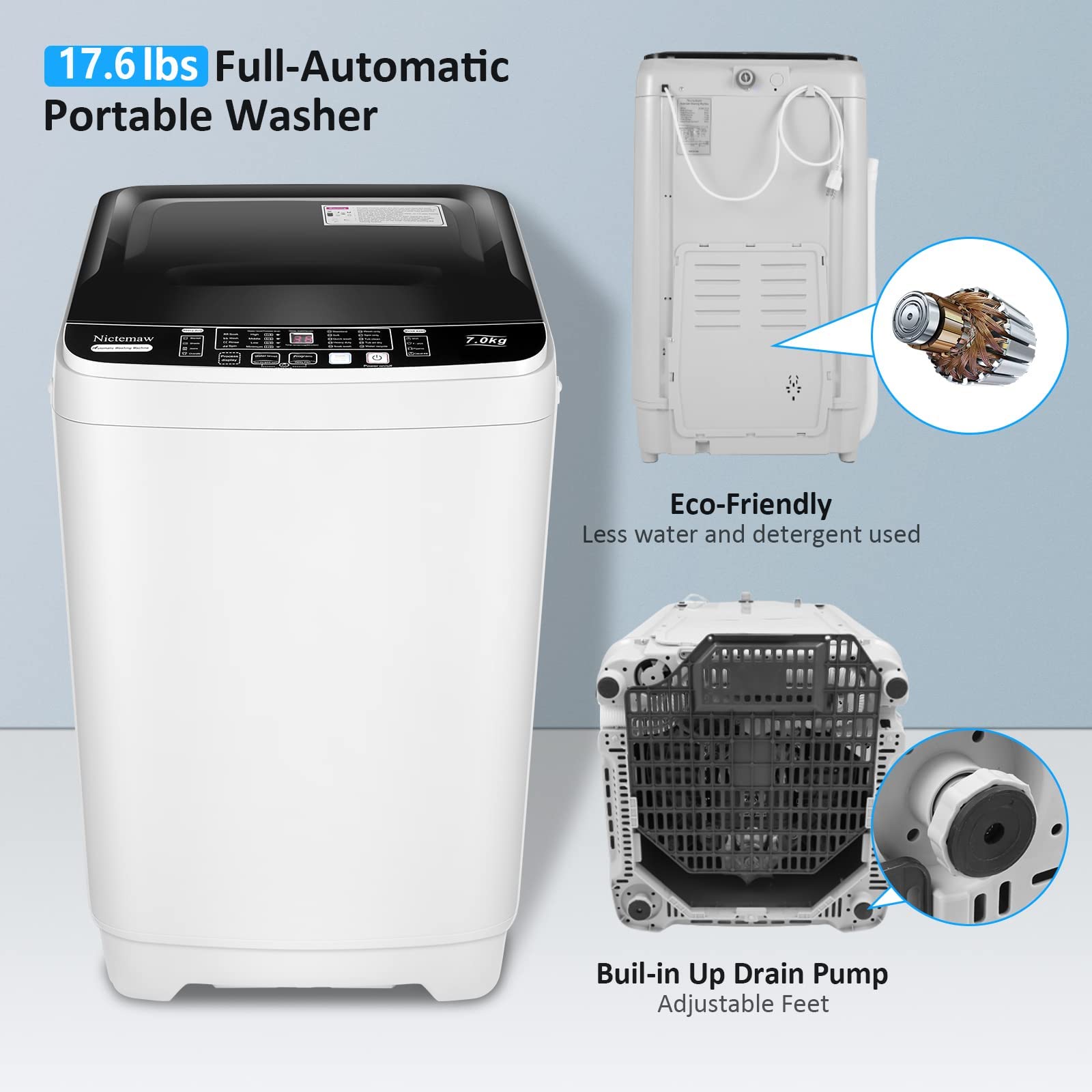 Amazon Com Nictemaw Portable Washing Machine 17 6lbs Capacity Portable Washer 1 9 Cu Ft Full Automatic Compact Laundry Washer With Drain Pump 10 Wash Programs 8 Water Level Selections With Led Display Ideal For Home Dorms Rv